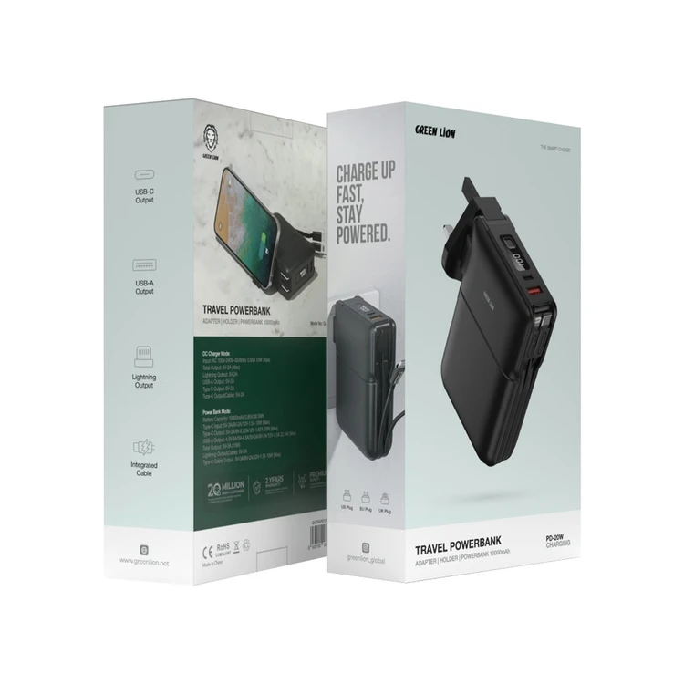 ظرفیت باتری : 10000 mhA خروجی : Lightning / Type -C حالت شارژر DC : دارد ورودی : AC 100V-240V، 50-60Hz 0.65A 10W (حداکثر) خروجی کل : 5V/3A (15W) خروجی Lightning : 5V/2A خروجی USB-A : 5V/2A خروجی Type-C : 5V/2A اصالت کالا : اصل
