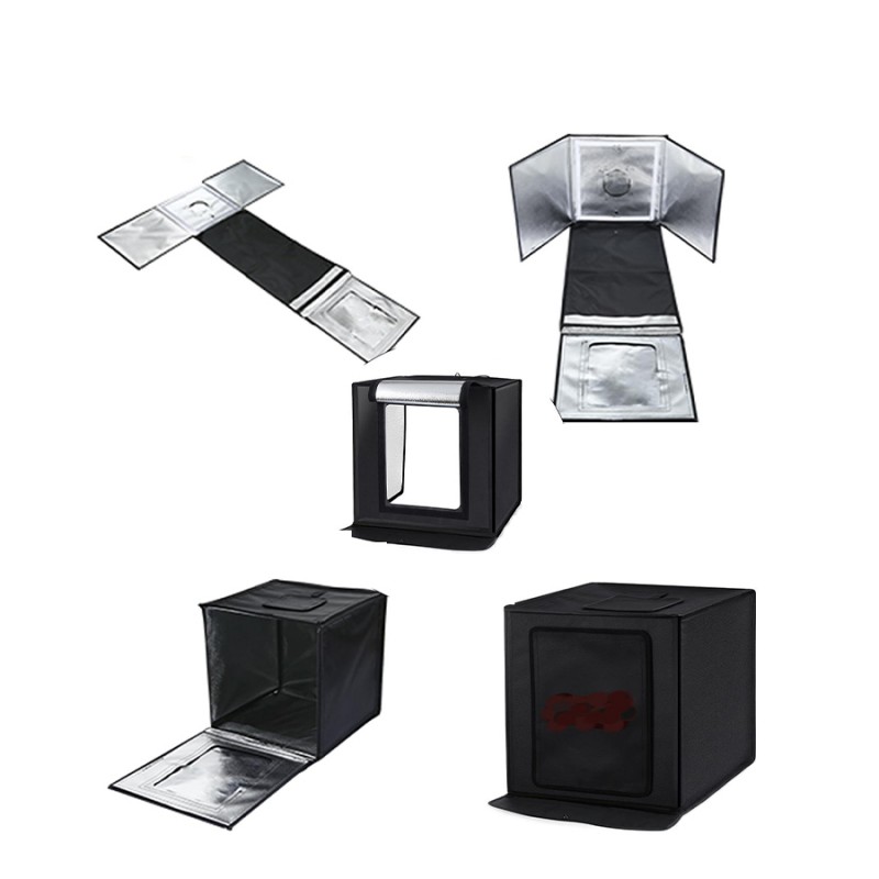 قابل حمل و دارای پنل LED داخلی برای نورپردازی ابعاد 40×40 سانتیمتر و همراه 2 لاین نور دو رنگ آداپتور برق مستقیم 50 وات با دیمر کنترل نور و راه اندازی آسان سبک و و دارای 4 عدد پس زمینه (سفید، مشکی، سبز و نارنجی) مناسب انلاین شاپ و پیج های طلا و ساعت,کیف و پوشاک کم حجم و …