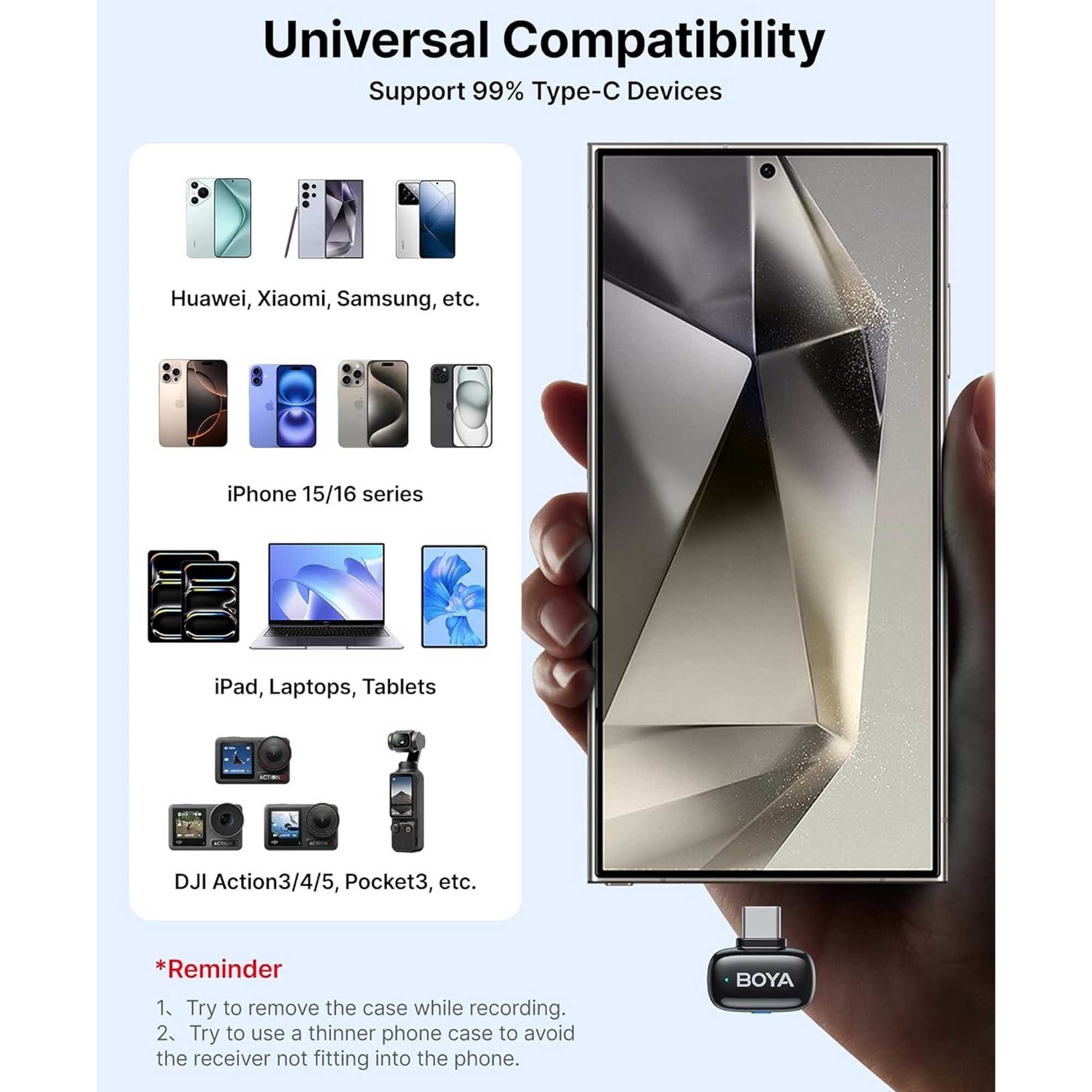 میکروفون Boya Mini 14 با اتصال USB Type‑C، یک گزینه جمعوجور و کاربردی برای تولید محتوا، ضبط مصاحبه، استریم و وویساوور (Voice-over) با گوشی یا لپتاپهای اندرویدی و سیستمهای دارای پورت تایپسی است. این میکروفون با طراحی مینیمال و کیفیت صدای شفاف، تجربهای حرفهای از ضبط صدا را در اختیار شما میگذارد.